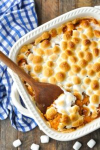 Sweet Potatoes: While you can boil them whole, I suggest peeling and cubing your sweet potatoes before boiling to cut down on the cooking time. Once tender, you can mash the sweet potatoes with a potato masher or two forks. The latter method leaves a bit of texture, which I prefer in this casserole.