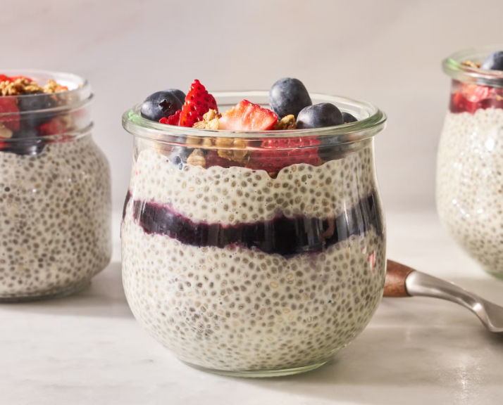 In a medium bowl, whisk milk, chia seeds, maple syrup, vanilla (if using), and salt. Let sit 10 minutes, then stir again to incorporate.